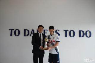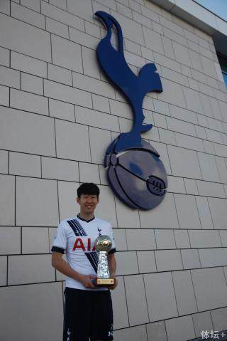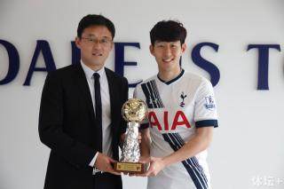 孙继海为韩国球员孙兴民颁发2015亚洲金球奖