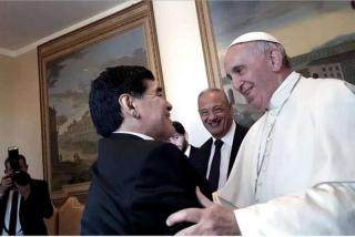 马拉多纳觐见教皇 手绘86年世界杯进球