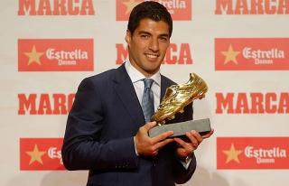 苏亚雷斯领取2015-16赛季欧洲金靴奖
