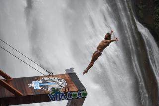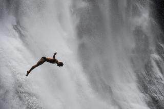 瀑布跳水精英赛在贵州上演