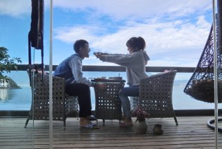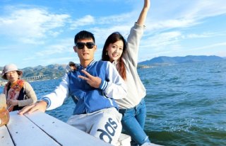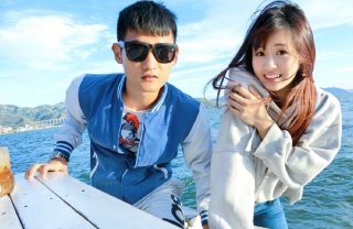 廖力生携女友度假 蓝天碧水遇上撩人美腿...