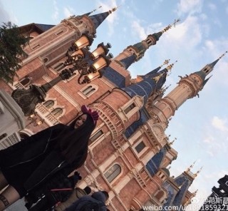 范志毅女儿夜游迪士尼 黑丝玉腿美丽冻人