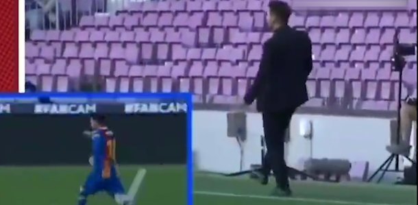 当梅西开始启动,场边的西蒙尼下意识地伸脚...