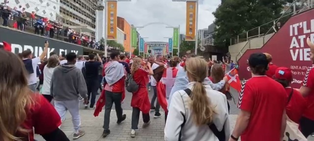 【体坛在现场】丹麦球迷高歌行进为球队助威