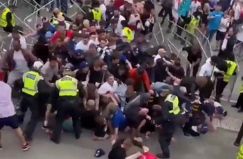 欧洲杯决赛前场外骚乱!英格兰球迷大闹检票口