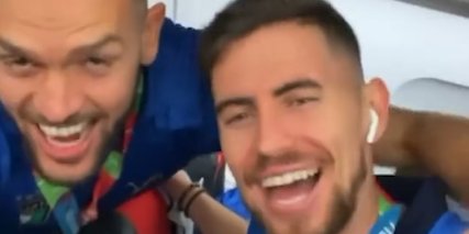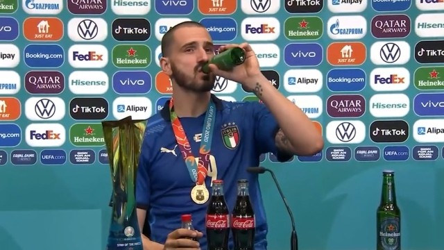 拿了冠军放飞自我,博努奇左手喝啤酒右手喝可乐