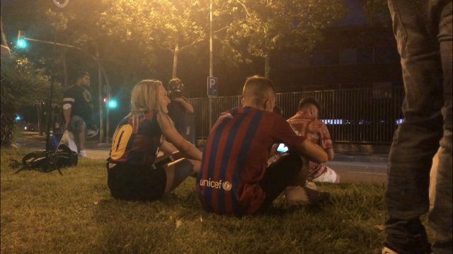 【现场】梅西确认离队后,近百球迷媒体在诺坎普聚集