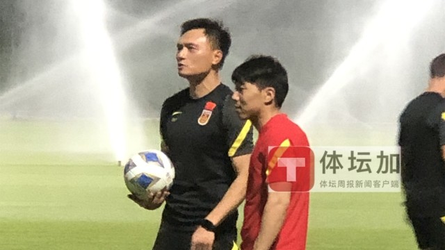 进入“角色”!金敬道与助理教练忻峰训练角球