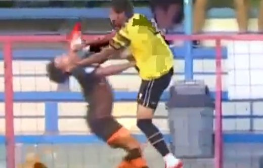 印尼联赛爆发全武行 球员拼抢中惨遭对手飞脚爆头