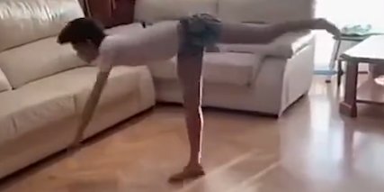 脚底抹油,西班牙少年穿拖鞋在家练花滑