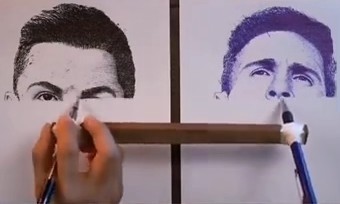 神乎技矣!一只手,两支笔,同时画出C罗梅西