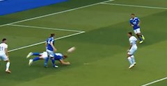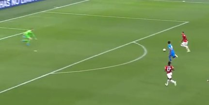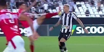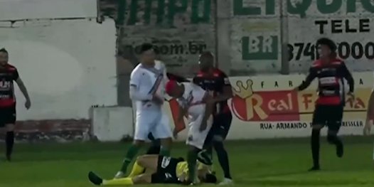 巴西赛场球员争抢时脚踹对方脸部,随后被罚下