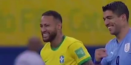 苏亚雷斯和内马尔在说什么,笑得那么开心