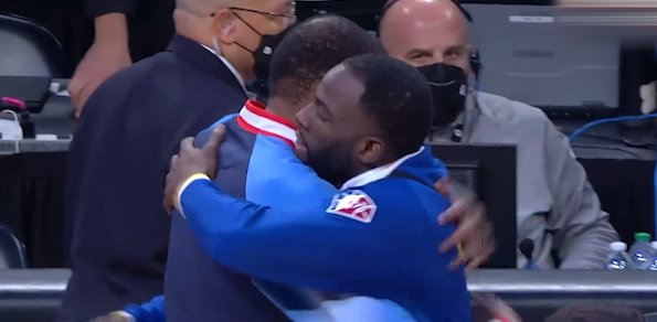 曾经并肩作战的队友,赛后库里与杜兰特拥抱致意