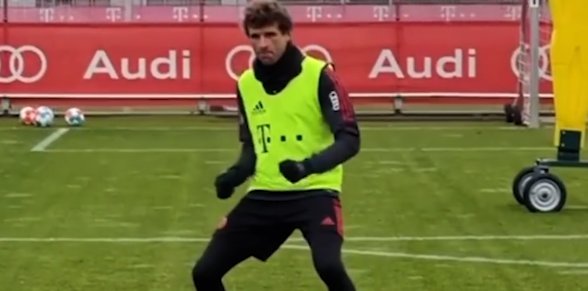 穆勒向众人展示了他的任意球技术和他的庆祝动作