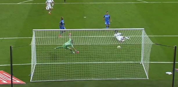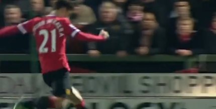 纵使曼联拥有神扑德赫亚,面对这球也于事无补