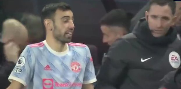 忿忿不平!曼联vs维拉结束后B费向第四官员抱怨