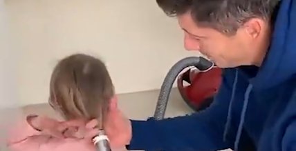 莱万:当妈妈不在的时候,我就这么给女儿梳头