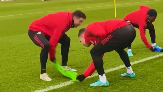 曼联训练课上玩小游戏,C罗笑得好开心啊