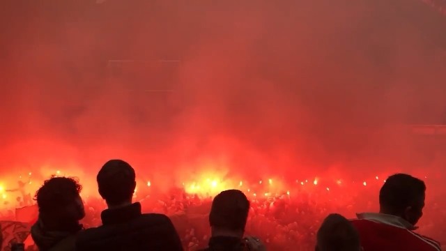 阿贾克斯和费耶诺德赛前,看台上燃起熊熊烈火
