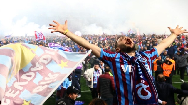 震撼!特拉布宗38年再夺冠,球迷拥入球场太壮观了