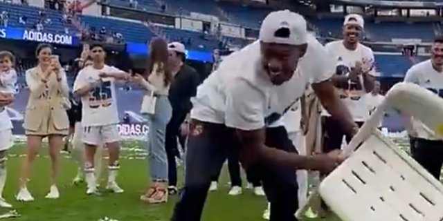 属实传统节目了,阿拉巴夺冠庆典中举椅子庆祝