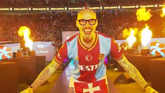 一天一火花创造满天星!穿越机拍下特拉布宗庆典