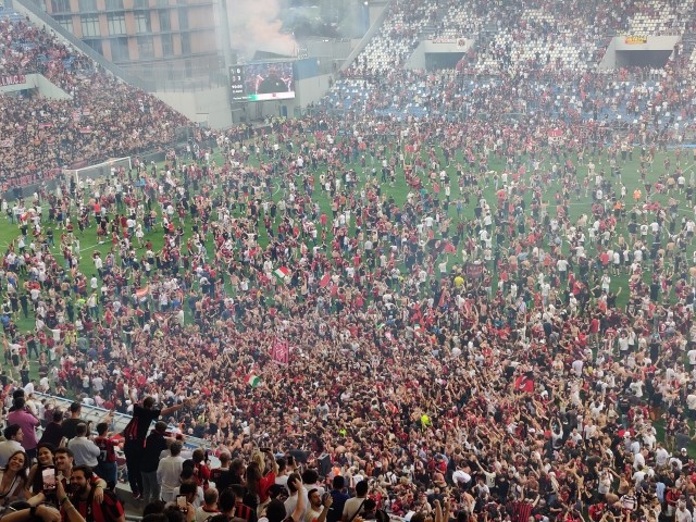 【现场】AC米兰时隔11年夺冠 现场米兰球迷开始庆祝