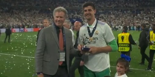 库尔图瓦接过欧冠决赛最佳球员奖杯,当之无愧