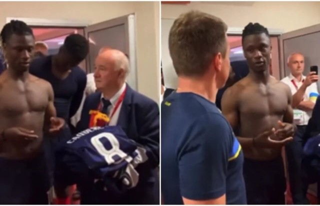 好小伙,卡马温加给对手乌克兰赠送法国队球衣