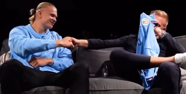 哈兰德正式加盟曼城,送给老爸一件自己的曼城球衣