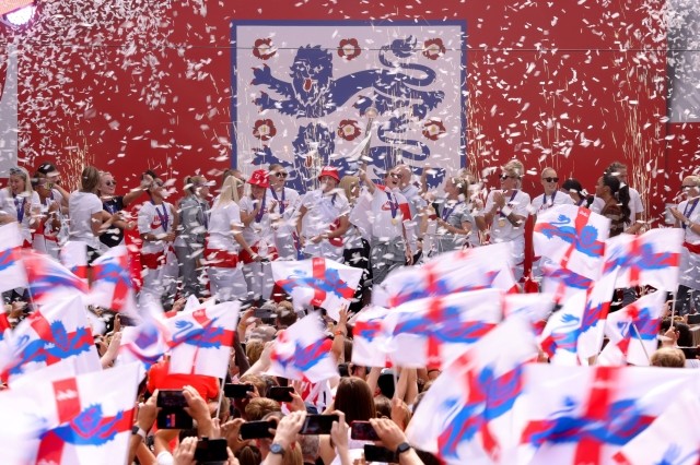 纵情庆祝吧!英格兰女足在球迷簇拥下捧起奖杯
