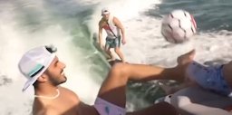 快乐足球海上踢球,水上那个是等着捡球的吗