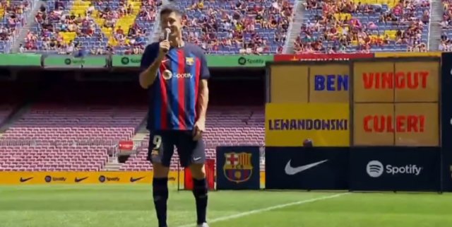 什么情况?莱万亮相诺坎普,球迷齐喊“梅西,梅西”