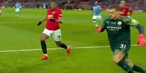 伊基塔在对阵英格兰的友谊赛上演蝎子摆尾式救球