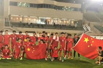 国青庆祝晋级U20亚青赛正赛 全队举国旗合影