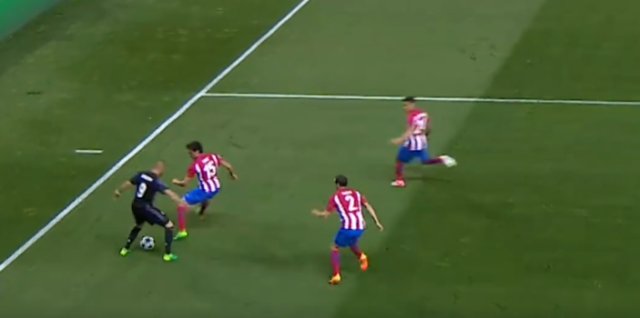 面对马竞的钢铁防线,本泽马一样完成1V3过人助攻