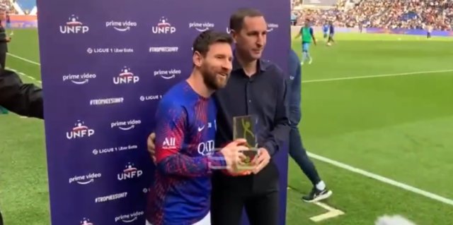 笑开花了,梅西领取法甲9月最佳球员奖杯