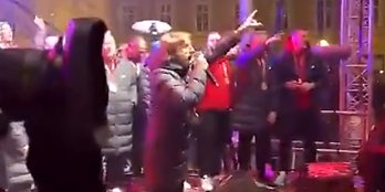 莫德里奇带领克罗地亚球迷一起高歌庆祝