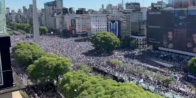 空前盛况,迎接阿根廷夺冠游行的球迷们聚集在街头