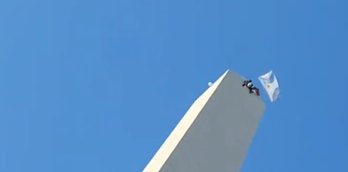 恐高勿入!阿根廷球迷爬上67米地标挥舞旗帜