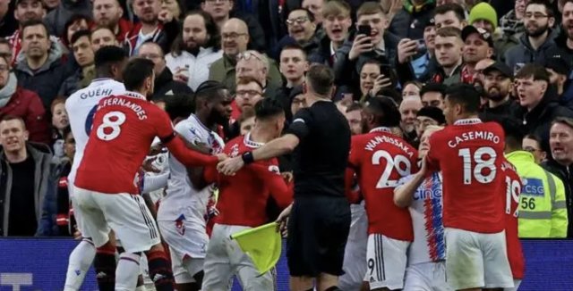 球迷看台视角拍摄曼联水晶宫冲突过程