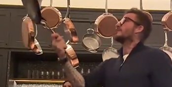 男人的快乐就这么简单,贝克汉姆秀胸部停饼