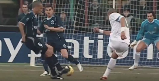 冰王子在禁区前顺势的倒地,对方守门员猝不及防