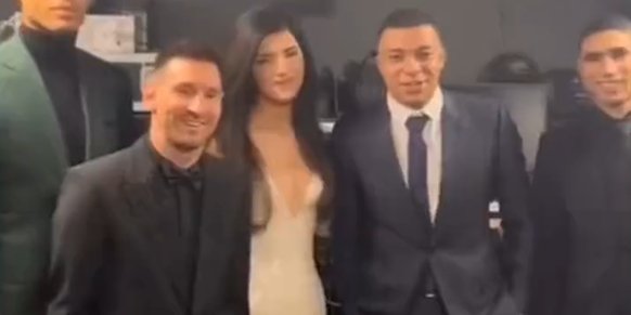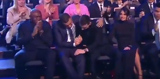 惺惺相惜!起身领奖前,梅西先与身边的姆巴佩握手
