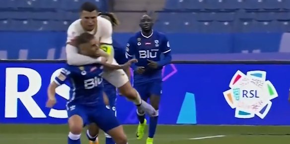 C罗锁喉式抱摔对手,裁判出示黄牌予以警告