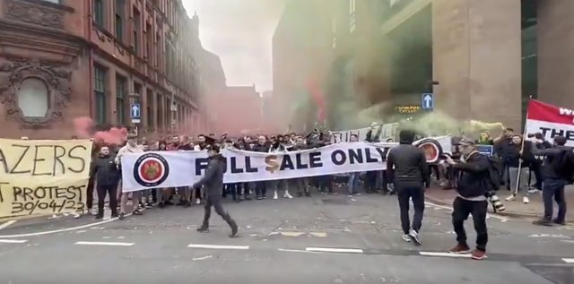 与阿斯顿维拉比赛前,曼联球迷举行了一场游行示威
