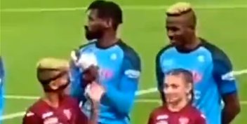 奥斯梅恩和模仿他的小球童击掌