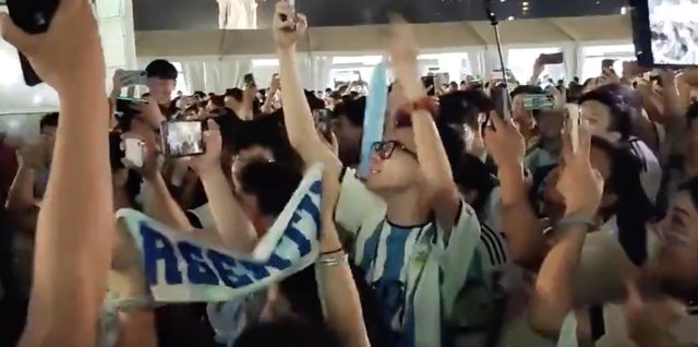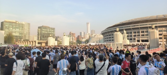【现场】阿澳大战在即 球迷工体外高呼梅西的名字