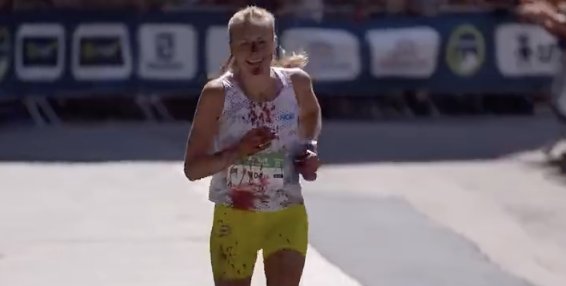 带血冲线!马拉松运动员摔倒起来继续比赛
